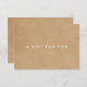 Modern minimalist rustic kraft professional personalised business gift certificate card template for you to customise. An elegant and professional design that projects a confident professional image with elegant white text on a Kraft paper background. Designed by Thisisnotme©