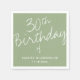Modern 30th birthday party paper napkins with a minimalist typography design. These napkins have a sage and white colour scheme. Simply add your information, add these napkins to your cart, then enjoy this milestone birthday!