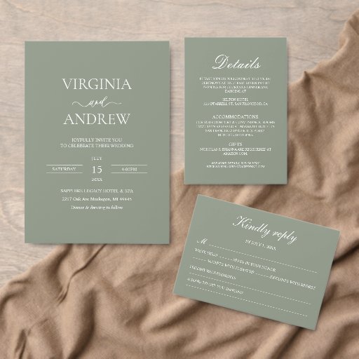 Minimalist Sage Green Floral Boho Elegant Wedding Envelope