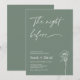 Simple rehearsal dinner invitation featuring an sage green background, a white modern calligraphy heading and line floral illustration. Ideal for someone looking for a minimalist sage green rehearsal dinner invitation.