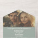 Introducing our sleek and elegant wedding invitation featuring a sage green background with ivory cream text. The top of the invitation can be customised with a photo to make the invitation truly unique to you. The photo has a transparent sage green overlay so it blends with the existing colour palette. This invitation is perfect for couples seeking a minimalist, yet elegant aesthetic for their special day. Included is a traditional paper RSVP, with the all-in-one design, guests can easily tear away the RSVP section and send it back. Additionally, we've provided space for email and website information for RSVPs, ensuring a seamless and convenient RSVP process.