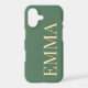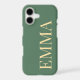 Elevate your everyday tech with this sophisticated and minimalist iPhone 17 case. Featuring a rich, earthy sage green background, this design showcases a bold vertical serif typeface in a soft cream-colored palette. The clean lines and timeless typography make it a perfect accessory for those who appreciate a "quiet luxury" aesthetic.