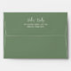 Modern sage green wedding envelope featuring a simple design with your names in an elegant script typography and your return address in a minimalist sans serif font. This chic wedding envelope works well for any style of wedding invitation suite.