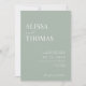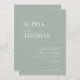 Modern wedding invitation with minimalist typography design in sage green colour. Easily personalise with all of your information for custom wedding invitations,