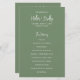 Modern sage green wedding program featuring a simple design with your names in an elegant script typography and your event details in a minimalist sans serif font. This chic wedding program works well with any style of wedding.