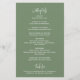 Modern dark sage green budget wedding program flyer featuring a simple design with your names in an elegant script typography and your event details in a minimal sans serif font. This chic wedding program works well with any style of wedding.