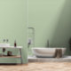 This wallpaper features a minimalist sage green colour, perfect for adding a touch of serenity and refreshment to any room. The cool green hue creates a calming and peaceful atmosphere, while the clean and simple design adds a touch of modern sophistication.