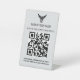 Modern and sleek, this salon QR code sign is perfect for displaying your service menu and prices with a simple scan. Designed with a clean, neutral background and customisable details, it’s ideal for placement at reception desks or styling stations. Make client interaction easier while maintaining a professional look for your salon, spa, or beauty studio.