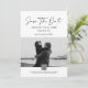 This editable save the date template is a modern black and white photo wedding announcement with minimalist typography, perfect for couples looking for a stylish and easy-to-personalise design.