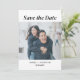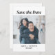 Minimalist Save the Date card with photo. The back side has a custom QR code that can be replaced.