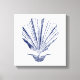 Minimalist wall art with scallop sea shell in blue over a white background for nautical decor. Perfect for an empty wall where you can display several similar designs for an elegant coastal or nautical ambiance.