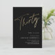 Modern minimalist 30th birthday party invitation features stylish faux gold foil number handwritten script Thirty and your party details in classic serif font on black background colour, simple and elegant, great surprise adult milestone birthday invitation for men and women. the black background colour can be changed to any colour of your choice.