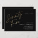 Modern minimalist 75th birthday party invitation features stylish faux gold foil number handwritten script Seventy Five and your party details in classic serif font on black background colour, simple and elegant, great surprise adult milestone birthday invitation for men and women. the black background colour can be changed to any colour of your choice.
