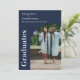 Twins graduation or double graduatio party invitation card.Two Photo of the graduate appears on the elegant grad party postcard invitation. The grad's name, school, and class year are written in casual modern black script on the back.