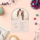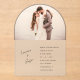 This stunning wedding invitation beautifully combines modern elegance with boho charm. The soft, serene photo of the bride and groom captures a joyful, intimate moment, while the minimalist script calligraphy adds a sophisticated, yet relaxed touch. The gently rounded arch of the invitation highlights the couple’s love story, creating a timeless piece that will leave a lasting impression on your guests.