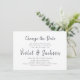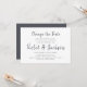Modern minimalist change the date wedding postponement cards feature handwritten brushy script in charcoal black and white colour, simple and stylish.