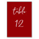 Help your guests find their seats with this elegant red table card. The letters and numbers are in a script font.