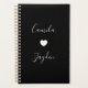 This wedding planner notebook features a heart symbol with the names of the bride and groom in a sleek black and white design. Whether you are creating checklists, timelines, budgets, guest lists, vendor information, ceremony, or reception details, this elegant and minimalist organiser will serve you well. It can be used as a bridal planner, a honeymoon planner, or a wedding planning notebook. It is appropriate for both modern and vintage weddings. Additionally, it is useable as a journal or diary. Customise with your names and dates to make it your own.