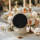 Minimalist Script Font Monogram | Elegant Black Round Wedding Menu Card.