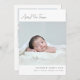 Minimalist Script Lettering 5-Photo Baby Birth Announcement. Add baby's name in elegant script lettering, 5 photos of your choice, and baby's time/date of birth and weight. Customize further with a personalized message to friends and family on the back.