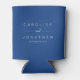 Modern Minimalist Script Marseille Blue Custom Wedding Can Cooler