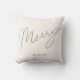 This minimalist and chic "merry" christmas/holiday throw pillow features a cream white background with script letterings. The reverse side features a dark grey background with white snow patterns. Personalise it for your needs. You can find matching products at my store.