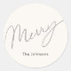 Minimalist Script Merry Cream White Holiday Classic Round Sticker