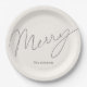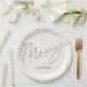 Minimalist Script Merry Cream White Paper Plate