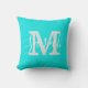 Minimalist Script Monogram Name Bright Teal Cushion