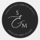 Minimalist Script Monogram Wedding Black Classic Round Sticker