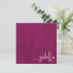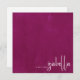 This chic note card features your name in a handwritten script calligraphy "a note from" on a distressed dark raspberry background. The typography is stylishly placed in the lower right corner. The back of the note card is white.