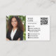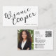Make a memorable first impression with this clean black-and-white business card. Your name shines in elegant script on the front, complemented by a refined serif job title for instant credibility. The reverse side lets you add a personal photo or brand image alongside crisp contact details and a scannable QR code that directs clients straight to your online portfolio. Generous white space and subtle typography project modern professionalism, perfect for creatives and executives alike. Click Personalise to update fonts, photo, and info in seconds.