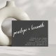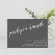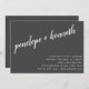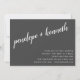 This minimalist wedding invitation features a sleek black background with white handwritten script and modern small caps for the event details. Clean and sophisticated, it’s perfect for city weddings, evening ceremonies, or couples who love a bold, contemporary look. Personalise with names, date, and venue for a stylish announcement.