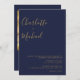 Minimalist Script Navy Blue And Gold Photo Wedding Invitation
