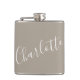 Minimalist Script Personalised Name Taupe Brown Hip Flask