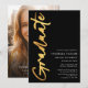 Minimalist Script Photo Black Gold Graduation Announcement