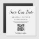 Avoid the hassle by inviting your friends online with a QR code that sends them straight to the wedding website for additional details. The design features a minimalist and simple black and white creative with a modern and very elegant calligraphy save our date. Easily replace with your own QR code and your personal information of choice.