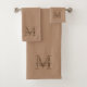 Minimalist Script Taupe Metallic Gold Monogram Bath Towel Set