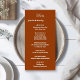 Minimalist Terracotta wedding reception menu, It includes everything you'll need for your reception, including your first course, second course, entree, and dessert. You can customise it by including your favourite items.