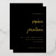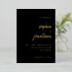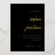 These elegant, minimalist gold foil wedding invitations feature modern gold script typography and clean, sans serif text on a dark black background for a simple and stylish design you will love.