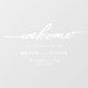 Create your own personalised wedding welcome window cling sign with elegant calligraphy script typography and modern minimal design.