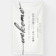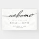 Create your own personalised wedding welcome sign banner with elegant calligraphy script typography and modern minimal black and white design.
