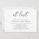 This elegant black and white wedding invitation features the romantic phrase At Last in delicate script. The minimalist layout and refined typography create a clean and timeless look that suits a wide range of wedding styles. The back includes a customisable QR code, perfect for linking to your wedding website, RSVP form, registry, or event details. Whether you’re a couple planning your special day or an event planner designing for a client, this invitation is fully editable and available in both printed and digital formats. A beautiful choice for romantic, minimalist, or contemporary weddings.