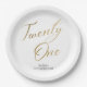 Minimalist Script white and Gold 21st Birthday Paper Plate