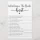 Minimalist Script Who Knows The Bride Best Game