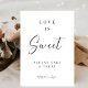 Introducing our Minimalist Signature Script Love Is Sweet Favour Pedestal Sign. This sign is a beautiful addition to any wedding or event, featuring a sophisticated signature script that reads ‘Love is Sweet’. Perfect for displaying on a pedestal at your favour table, it invites guests to partake in the sweetness of your special day. The elegant design adds a touch of class to your event decor, while the personalised message makes each guest feel special. Order now to add this charming detail to your event!