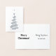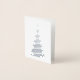 Vertical orientation contemporary minimalist graphic Christmas tree in silver foil against a white background.