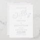 An elegant minimalist, simple and clean wedding invitation with a white background and typography in silver foil and script font with the word wedding. This design can easily be personalised with the details of your special day.