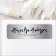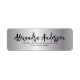 Trendy personalised return address label design featuring a faux silver background with your name written in a modern script. The text is fully customisable.
