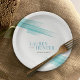 Minimalist simple aqua blue green colour ink strokes wedding paper plates. Other matching items and colour options are available. © Original ink brushstroke art and design by Sarah Trett for www.mylittleedenweddings.com on Zazzle.